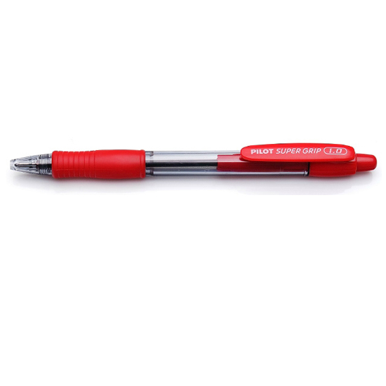 Caneta Esferográfica Super Grip Retrátil 1.0mm s/ tampa Pilot. Cor: Vermelha.
