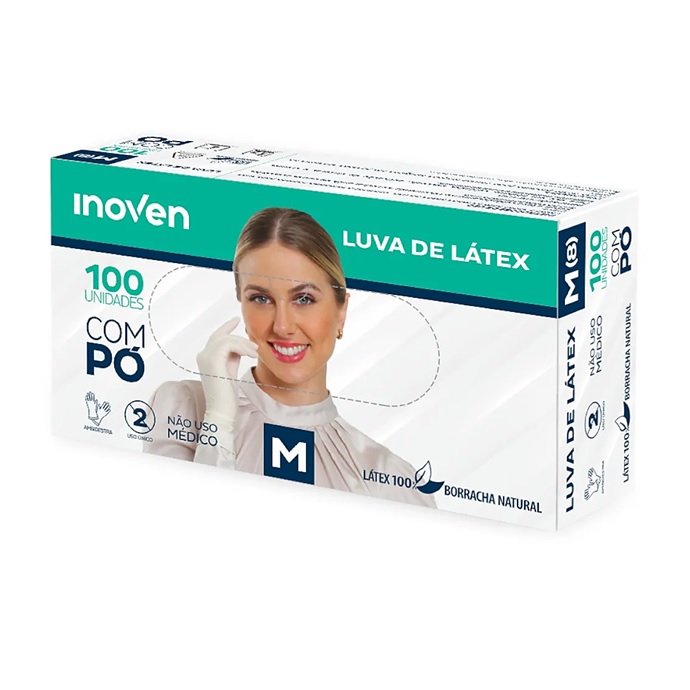 LUVA LÁTEX MÉDIA BRANCA DE PROCED. C/PÓ REF. 3022 CAIXA C/100UN INOVEN