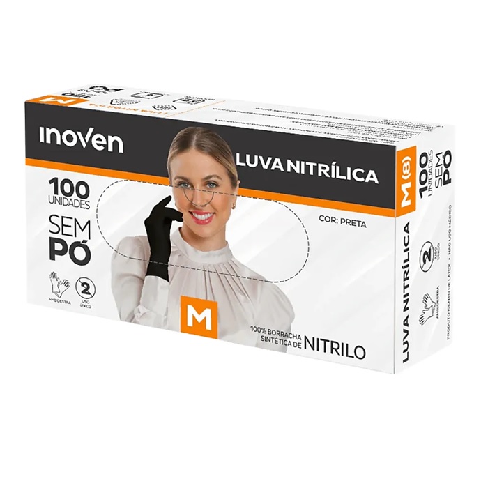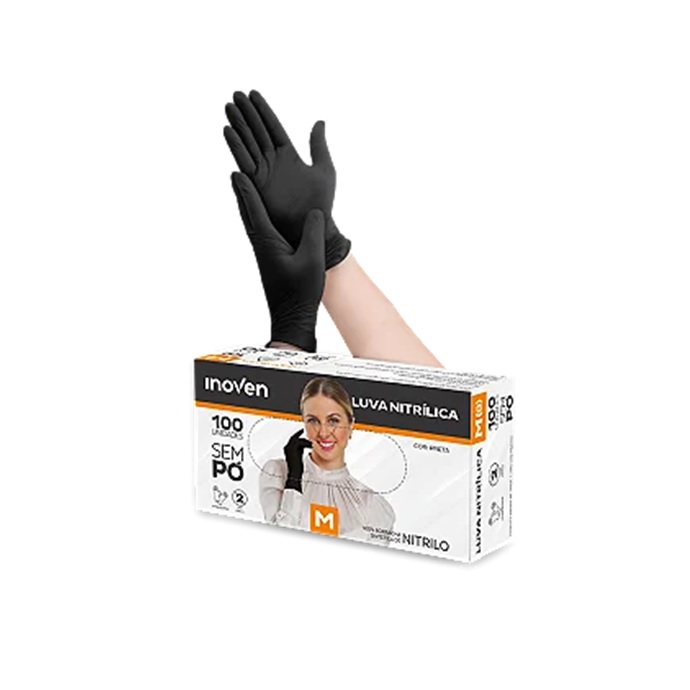 Luva Nitrilica Média Preta Sem Pó Inoven ref. 3037