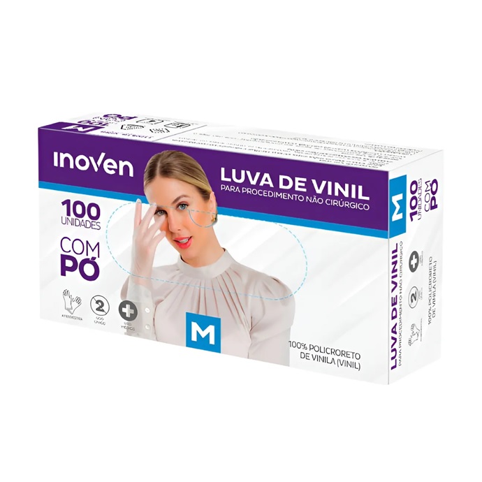 LUVA VINIL MÉDIA TRANSPARENTE C/PÓ CAIXA C/100 UN 3028 INOVEN