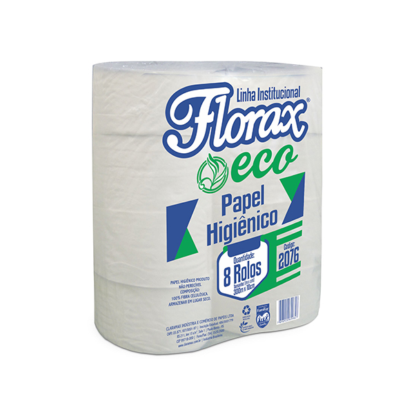 PAPEL HIGIÊNICO ROLÃO BRANCO ECO COM 8 ROLOS 300X10CM FLORAX