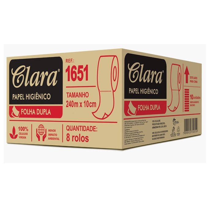 O Papel Higiênico Clara folha dupla é fabricado de forma cuidadosa e responsável, garantindo qualidade para você e para sua família. Nosso papel tem alta tecnologia empenhada em sua produção, somada a matéria prima de ótima qualidade e muito carinho envolvido em todo o processo, com isso tudo proporcionamos o resultado que você merece, um papel tão suave como uma flor.