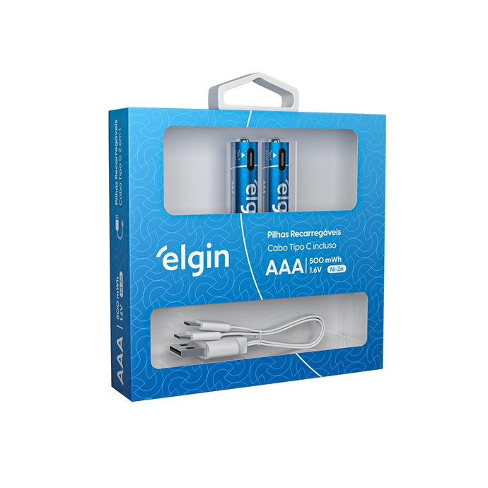 Cartela com 2 pilhas e 1 cabo USB-C
