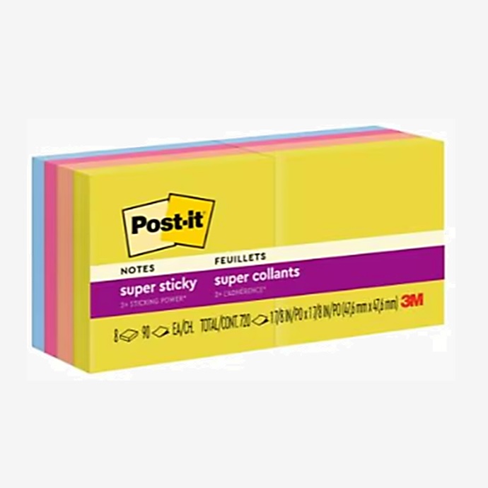 Bloco de notas super adesivas, possuindo 2x mais adesão do que o bloco Post-it® original. Ideal para colar em superfícies verticais