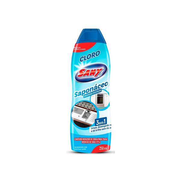 Saponáceo Cremoso Sany Cloro. Contém: 250ml.